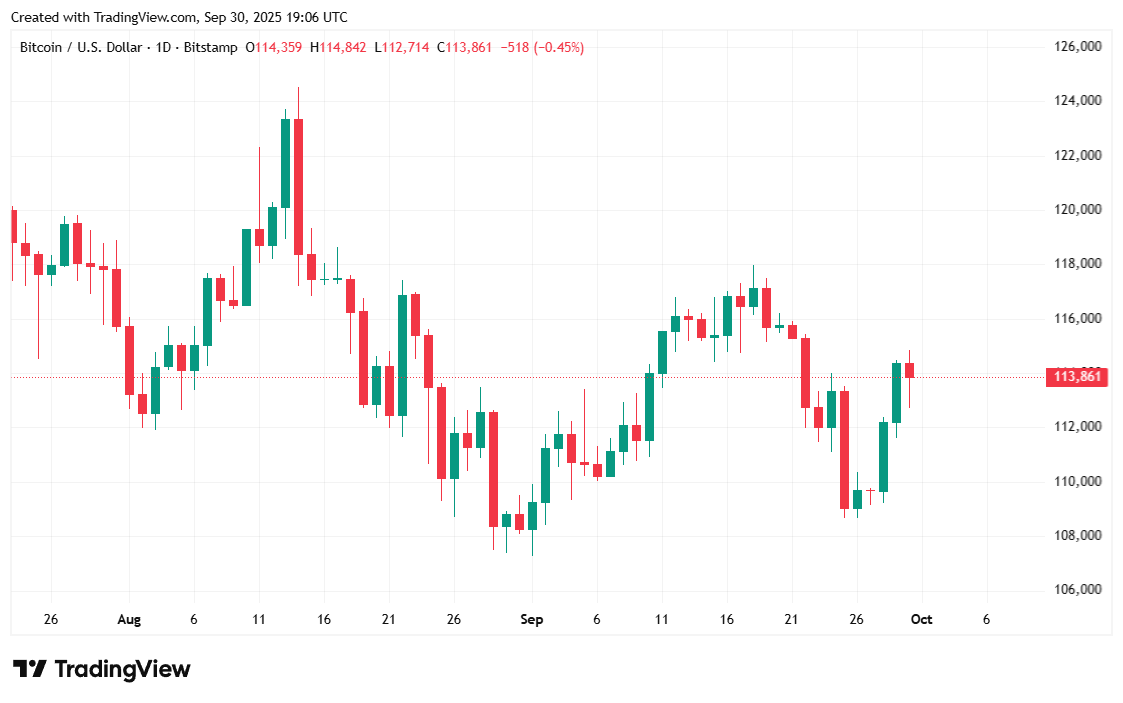 On Tuesday, the fiscal future of the United States became a battleground as Republicans and Democrats clashed with no resolution in sight. With only hours left before the deadline to approve a spending bill, financial markets took a hit, leading to bitcoin’s drop below $114K following its brief rally on Monday.
