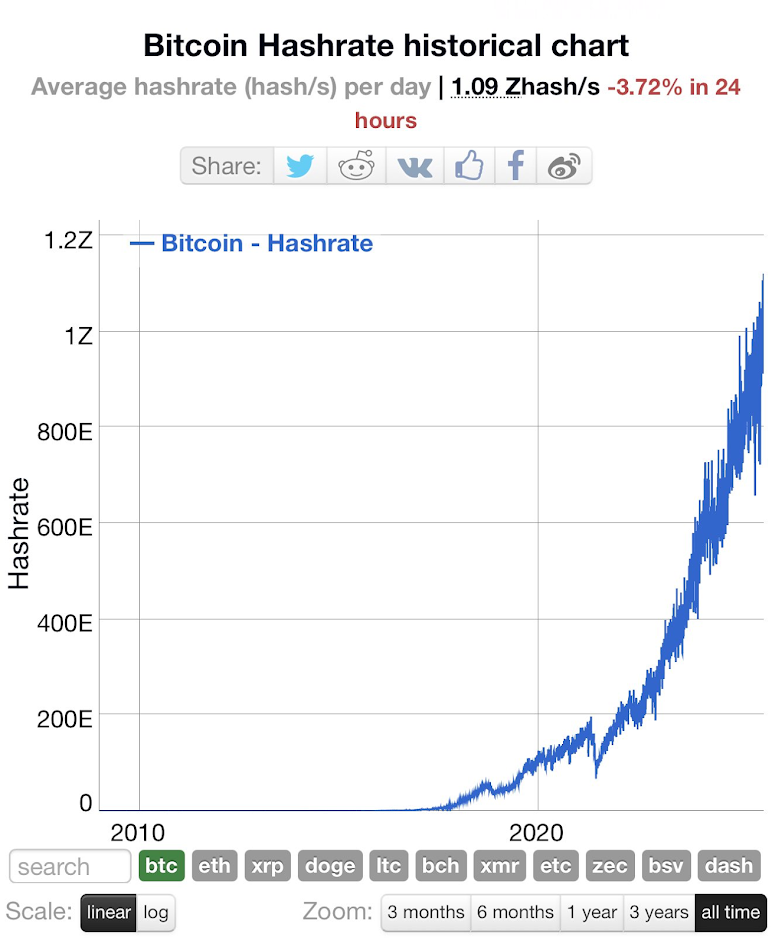 Bitcoin Hashrate Reaches 1 Zetahash for the First Time in History