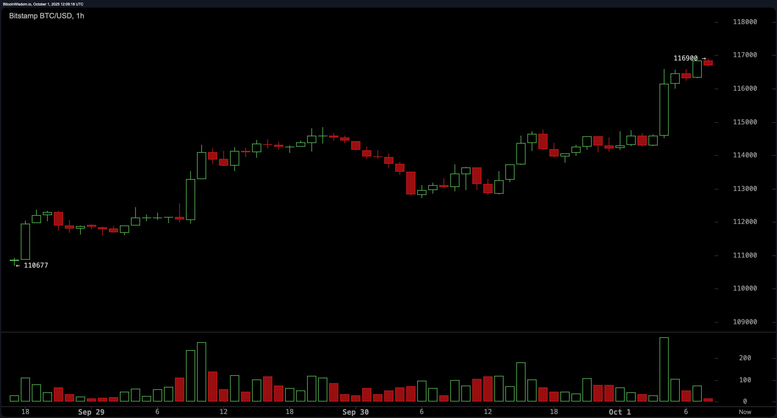 Bitcoin strutted into ‘Uptober’ like it owns the block—because it kind of does. With a market cap of $2.32 trillion, a 24-hour volume of $61.04 billion, and a price peacocking around $116,800, this digital heavyweight isn’t just moving, it’s making moves. Intraday range? A spicy $112,819 to $116,900 per coin. Let’s unpack what the charts have to say about all that swagger.