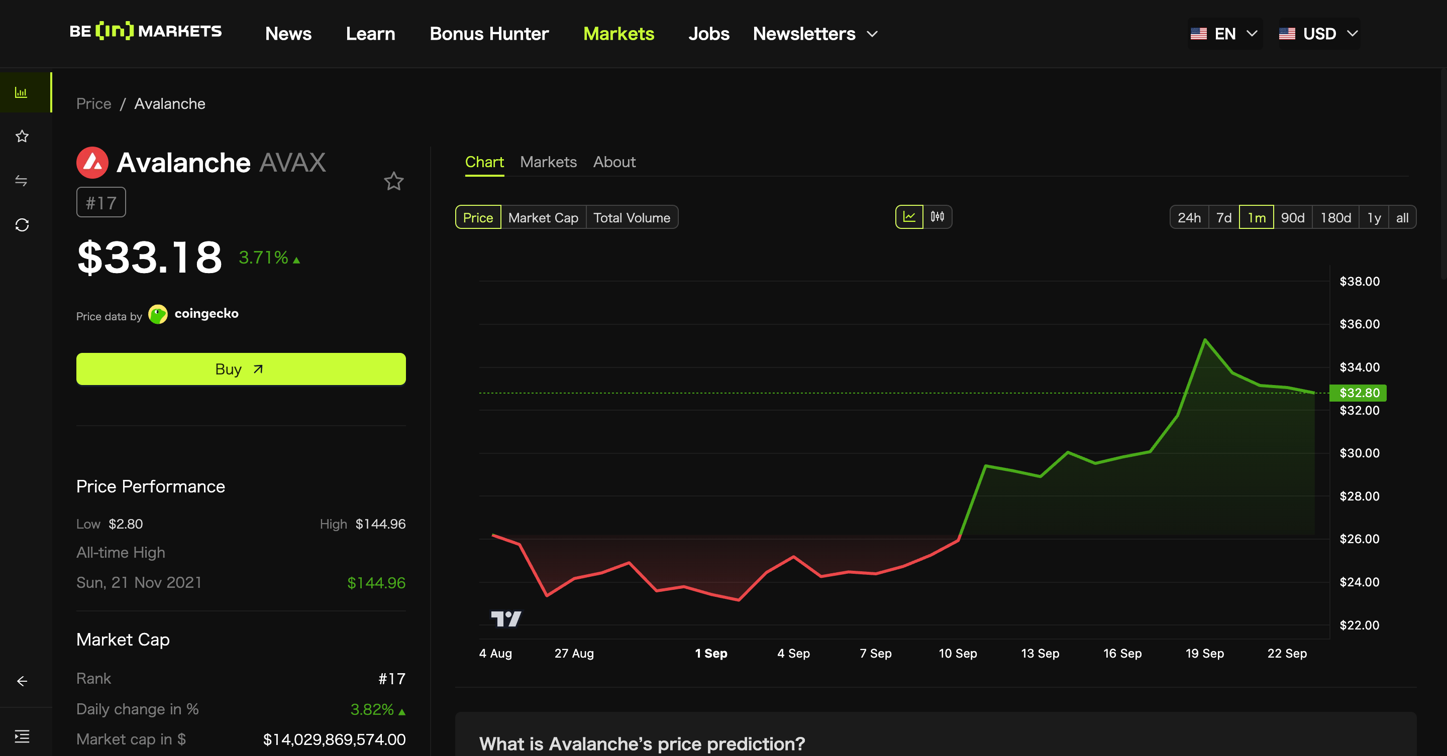 The positive news and strategic initiatives have also influenced AVAX’s market performance. As of the morning of September 23, during Asian trading hours, AVAX was trading at $33.18.