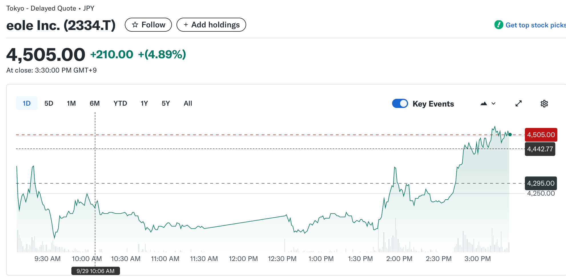 Eole Inc., a Tokyo-listed digital marketing and communication services company, saw its shares rise after announcing a partnership with Singapore-based Slash Vision on Monday.