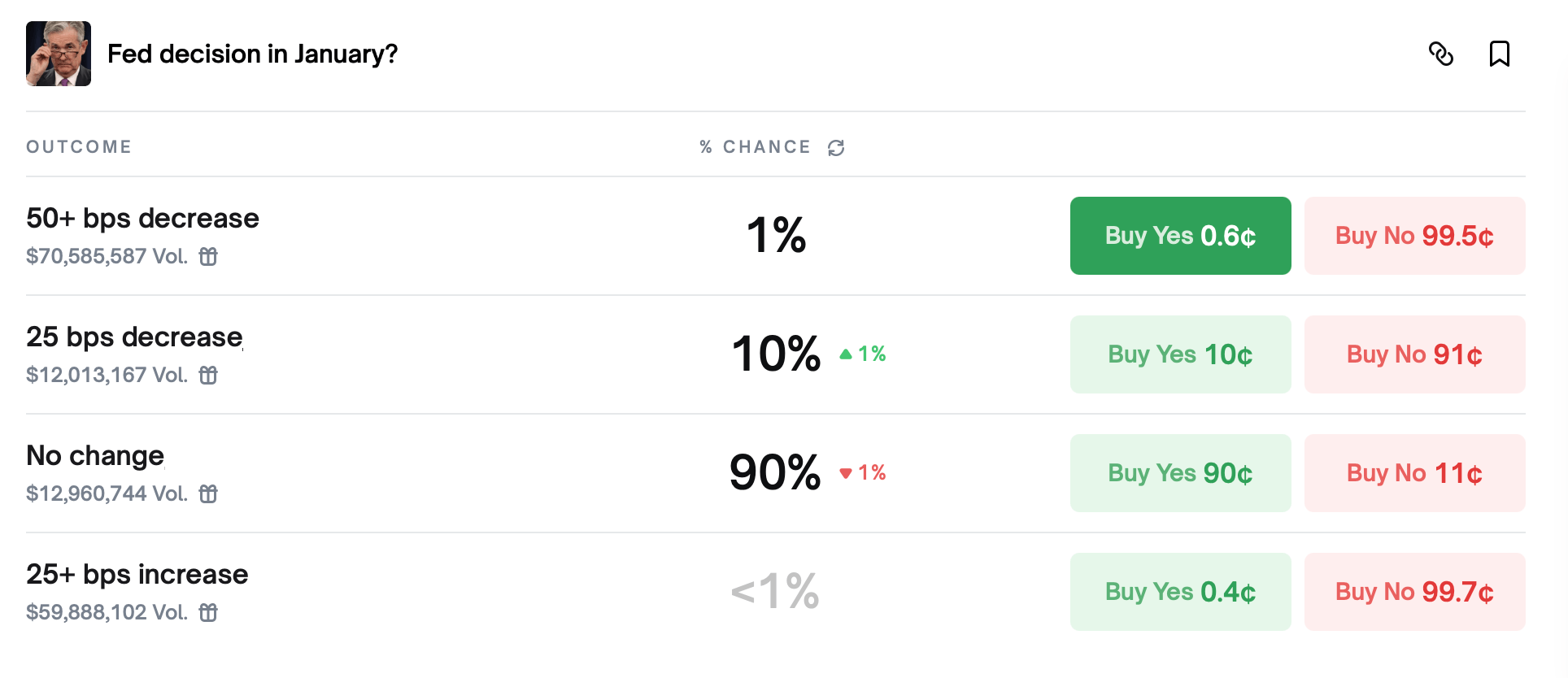 Volume data reinforces that restraint. CME futures tied to the January meeting show heavy open interest clustered around a hold scenario, suggesting institutional participants are positioned for continuity rather than change.