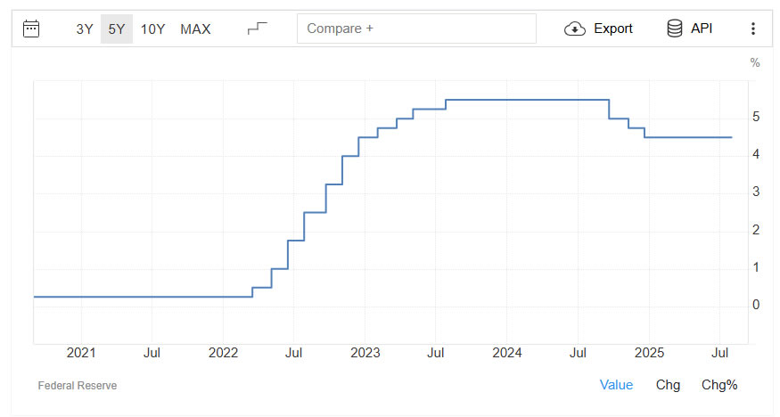 Interest rates have been high in the US since early 2022. Source: TradingEconomics